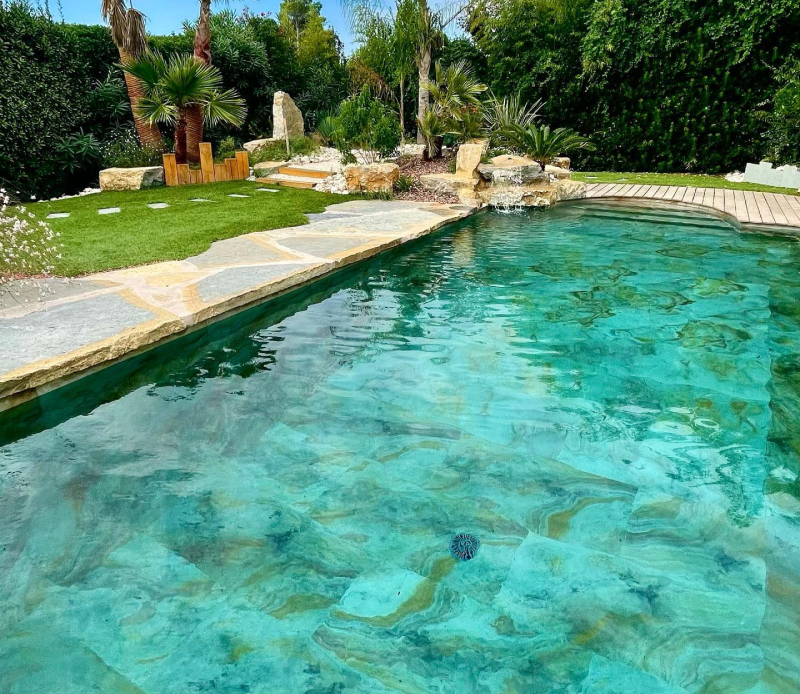 Grâce à ses formes naturelles et son eau cristalline, la piscine lagon invite à la relaxation et au ressourcement quotidien.